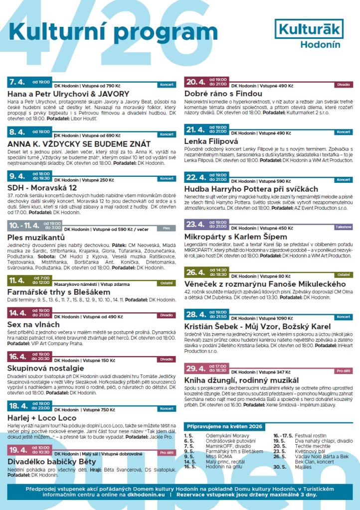 Program DK Hodonín a kina Svět na 4/2026