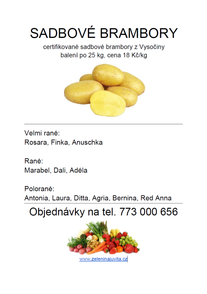 Řidič přijímá objednávky na sadbové brambory na telefonním čísle : 773 000 656